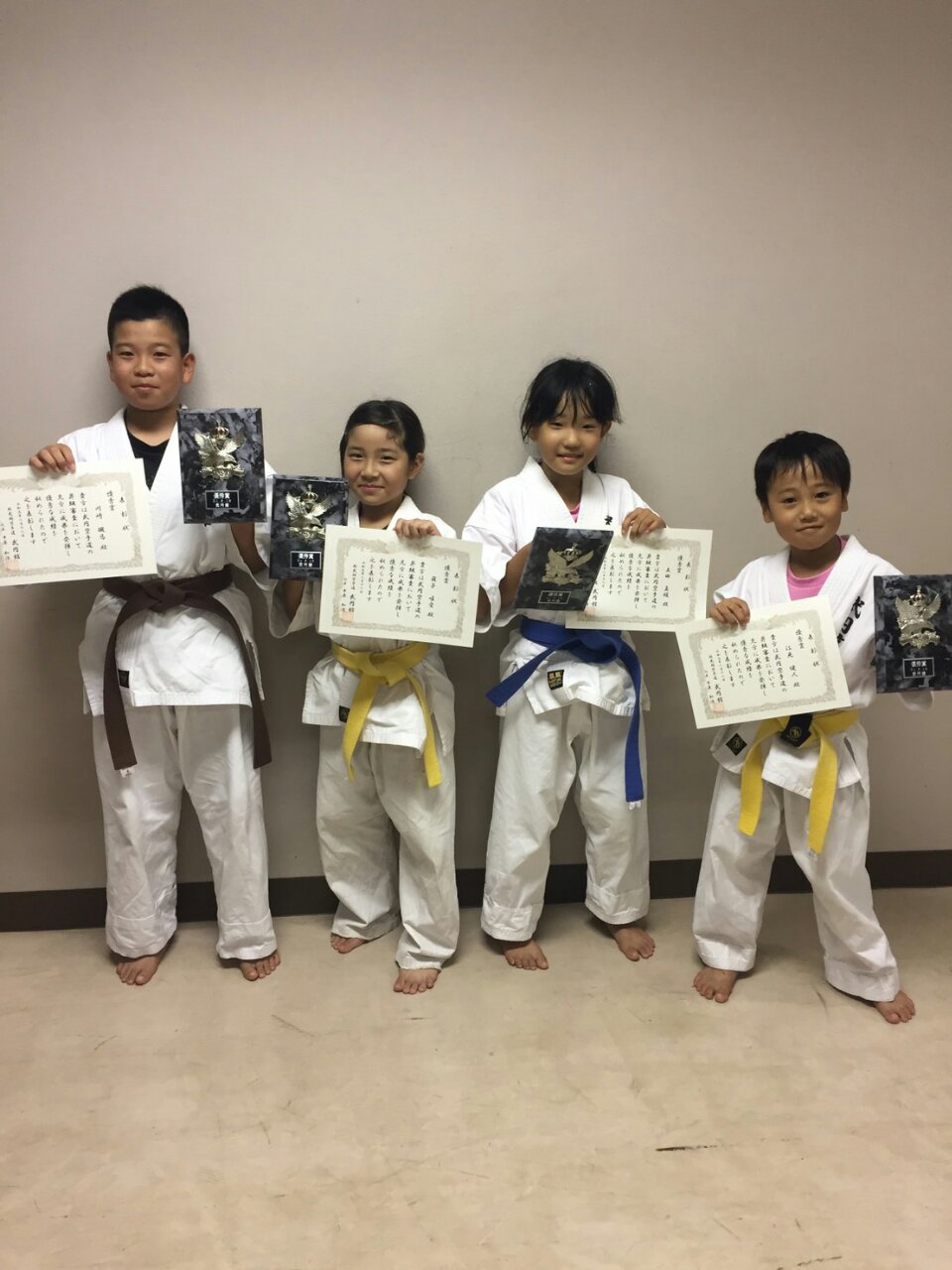 兵庫町町民運動会にて演武披露 2019-09-30 2019.9.29 兵庫町町民運動会で演武を披露しました。 基本、組手、試割りを行いました。 ご父兄様もお手伝いありがとうございました。 審査の表彰 2019-09-25 武円館では審査の際に、上達が際立った道場生(優秀賞)や最多出席者(努力賞)を対象に表彰をしています。 第5回極CUP空手道交流大会 2019-09-03 2019.9.1 第5回極CUPに参加しました。 (みやま市 高田体育館) 武円館からは10名エントリー 開会式では宮本凱生くんが選手宣誓。 小学1年初級の部で 野田逞心くんが優勝 おめでとうございます!